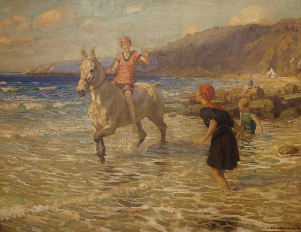 A beautiful painting which perfectly captures a lost era. The sense of innocence & frivolity captured by the artist here is delightful - a perfect English summers day! The deft brushwork & beautiful use of colour ensures the painting almost seems to glow.